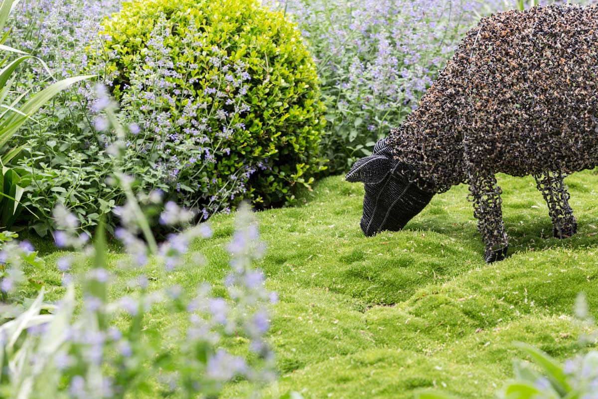 Lisa Ellis Gardens was commissioned to design a landscape that showcased the client’s unique sheep sculptures acquired during travel in South Africa.